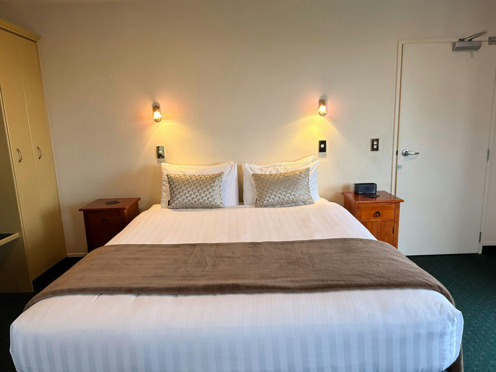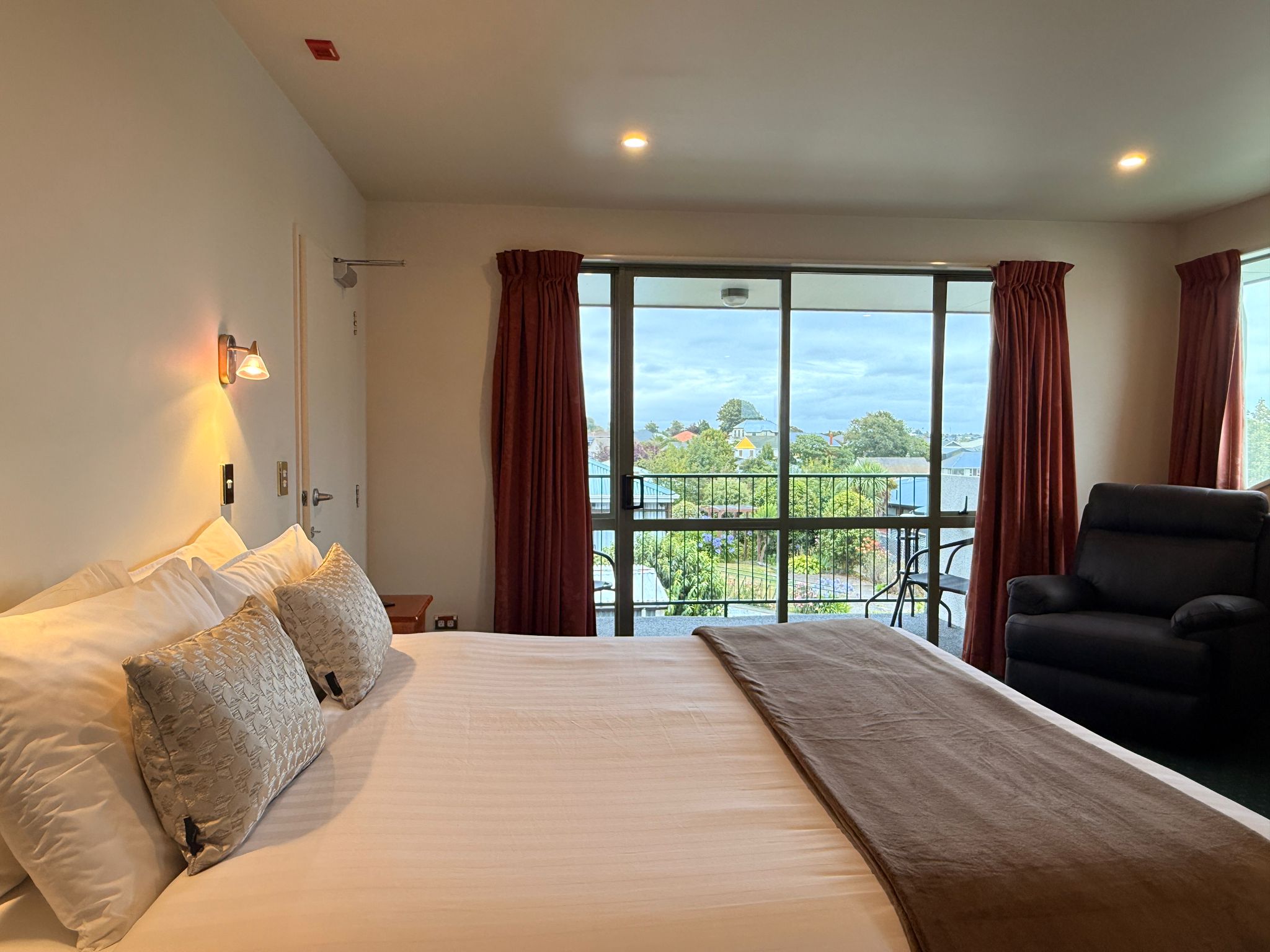 Executive Studio Room, spacious with double corner spa bath and separate shower, kitchen facilities, King bed, air conditioning, 40" HD LCD TV and Chromecast, work station, comfortable armchairs or double sofa bed couch. Sunny & private courtyard sitting area or balcony(upstairs) outside the room. Free unlimited Wi-fi
